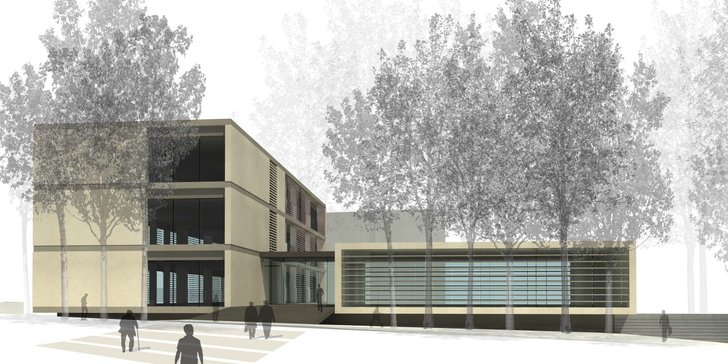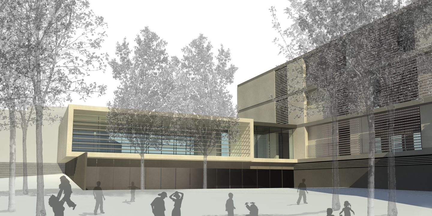 El programa funcional es resol en planta baixa més dos, exceptuant els espais lúdics, l’hostaleria i la gestió tècnica, que es situen a la planta semisubterrània. A l’hora de concebre el projecte es dóna resposta a aspectes de rellevant importància tals com: accés a cota zero, disposició dels volums de manera que generen uns espais lliures enjardinats i assolellats d’ús exclusiu pels usuaris del centre, resposta a l’entorn urbà i social, continuïtat i integració amb l’estructura urbana del barri, adequació de l’edifici a les diverses orientacions i desnivells i espai lúdic, ludoteca i biblioteca, en relació directa amb el terreny enjardinat, assolellat i controlat.
